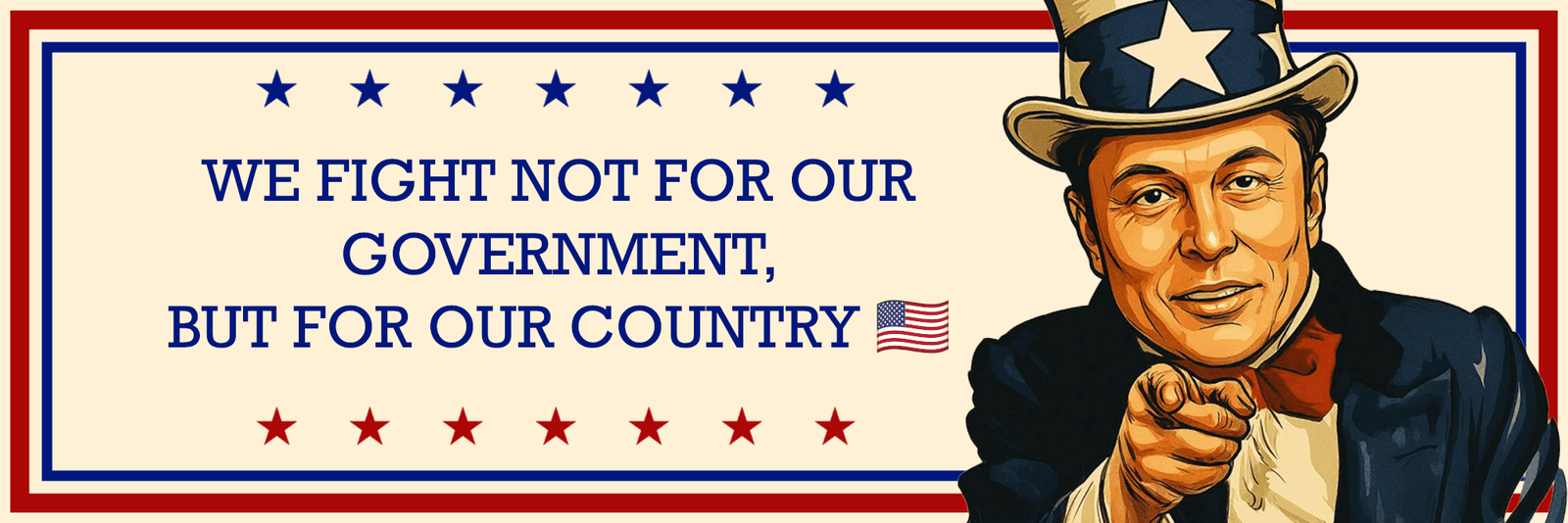 Listen up, patriots! This is Uncle Elon speaking, and I'm here to tell you something very important. We're a MOVEMENT, a REVOLUTION. We're not fighting politicians or bureaucrats. We're fighting for something much bigger: the future of America itself.